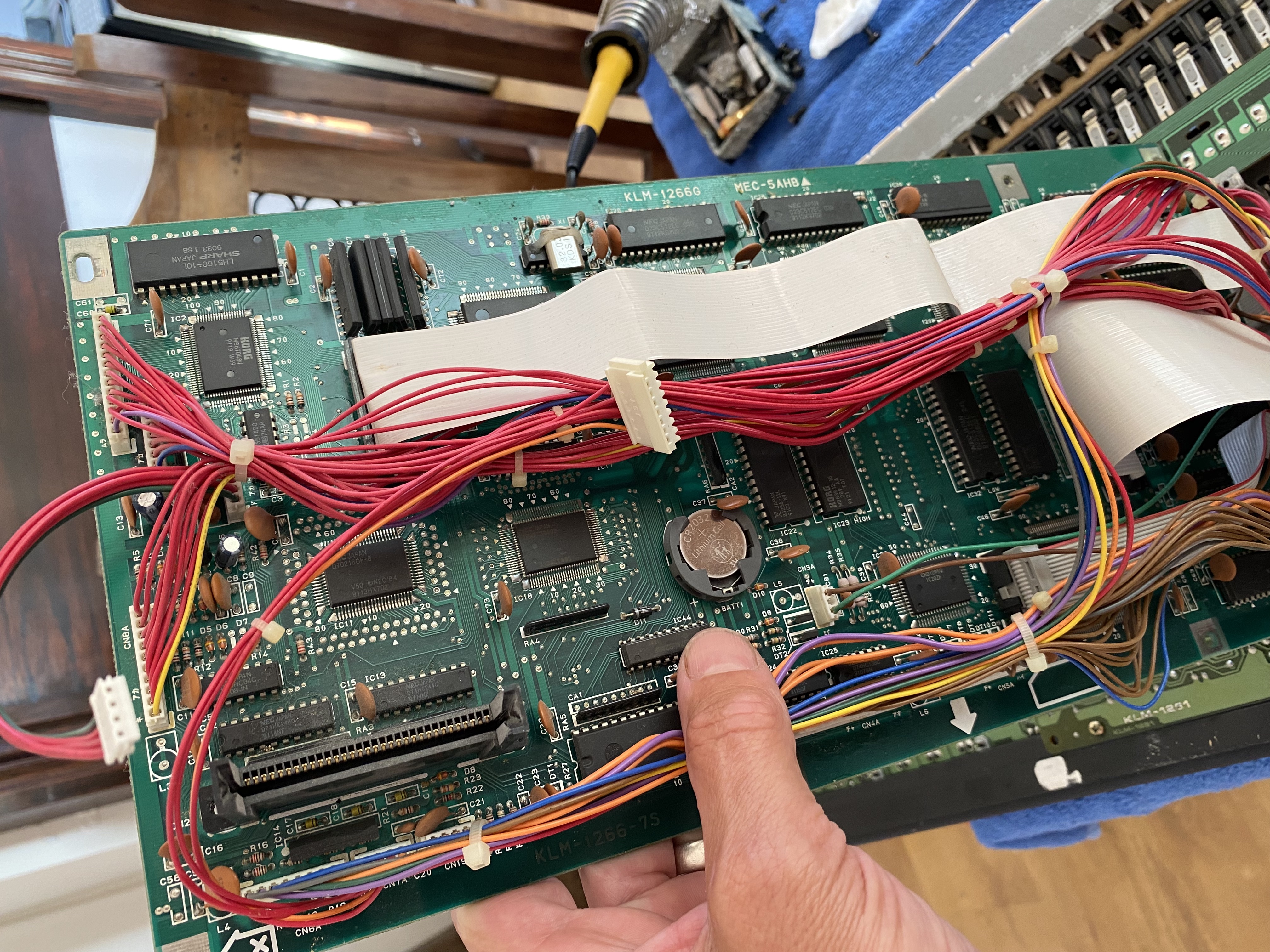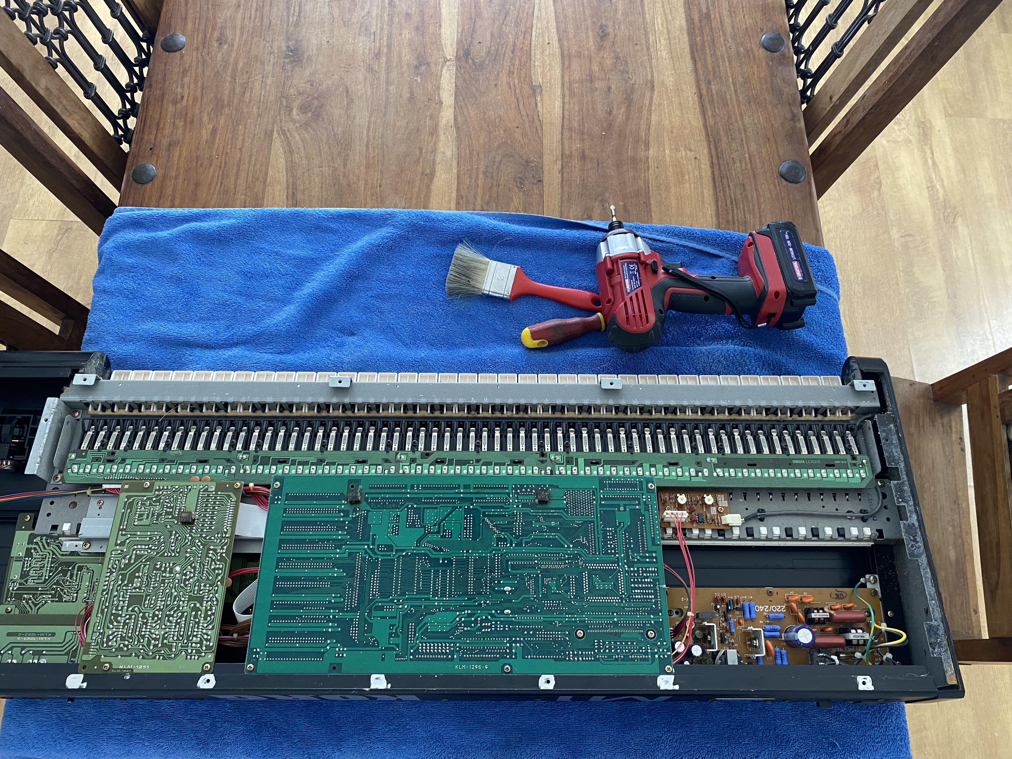That should have been it but plugging in headphones for a trip down 80's memory lane reveals another problem. The headphones keep cutting in and out on one side. The customer never mentioned that but I guess he wouldn't have known really, being the keyboard was lobotomised by the dead memory battery. Not one to leave it there at this stage I put the thing back on the operating table (dinner table)