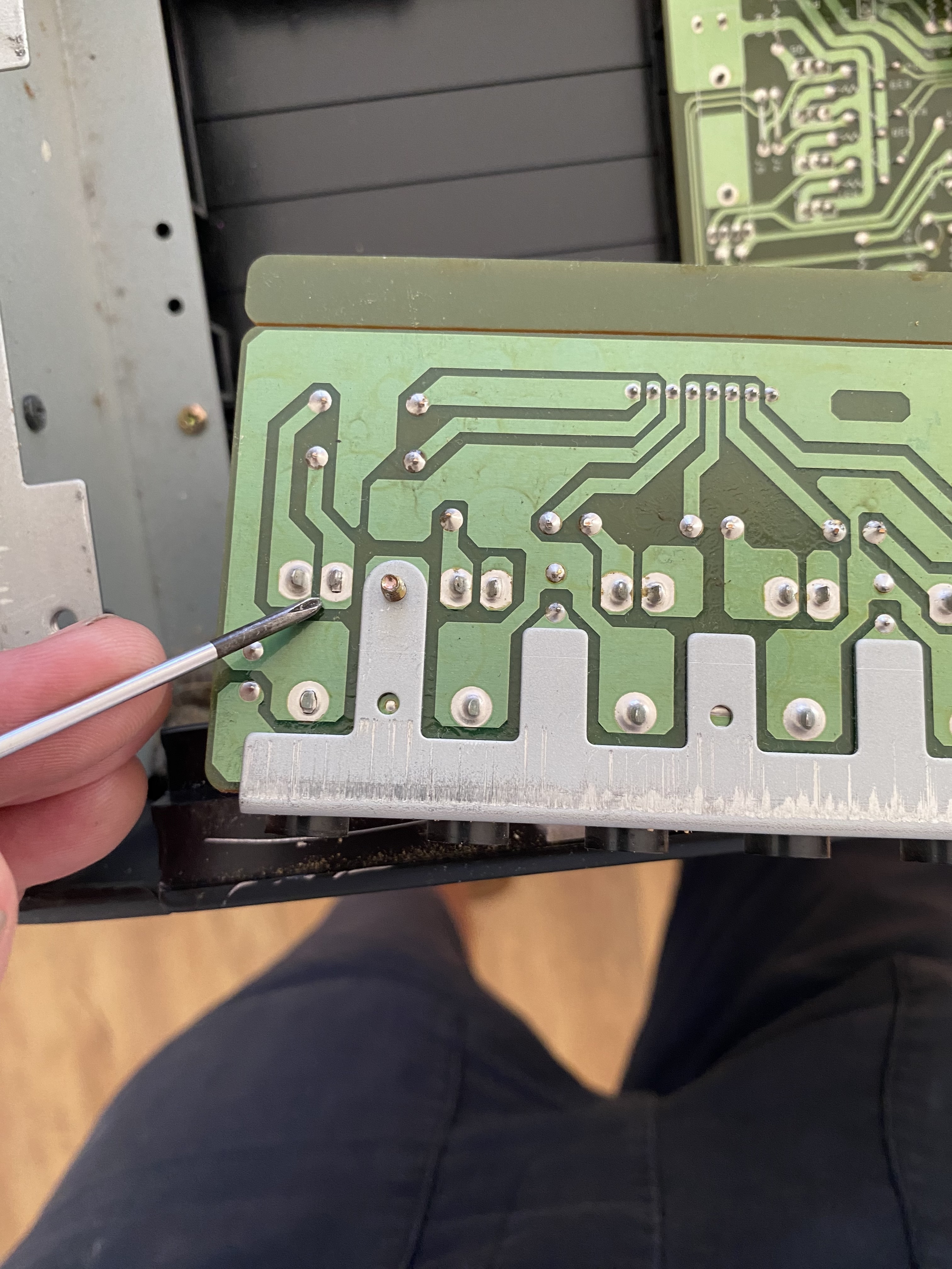 Bottom off. I love working on old stuff like this. It reminds me of teaching myself electronics in the eighties when all components were massive and easy to identify.
