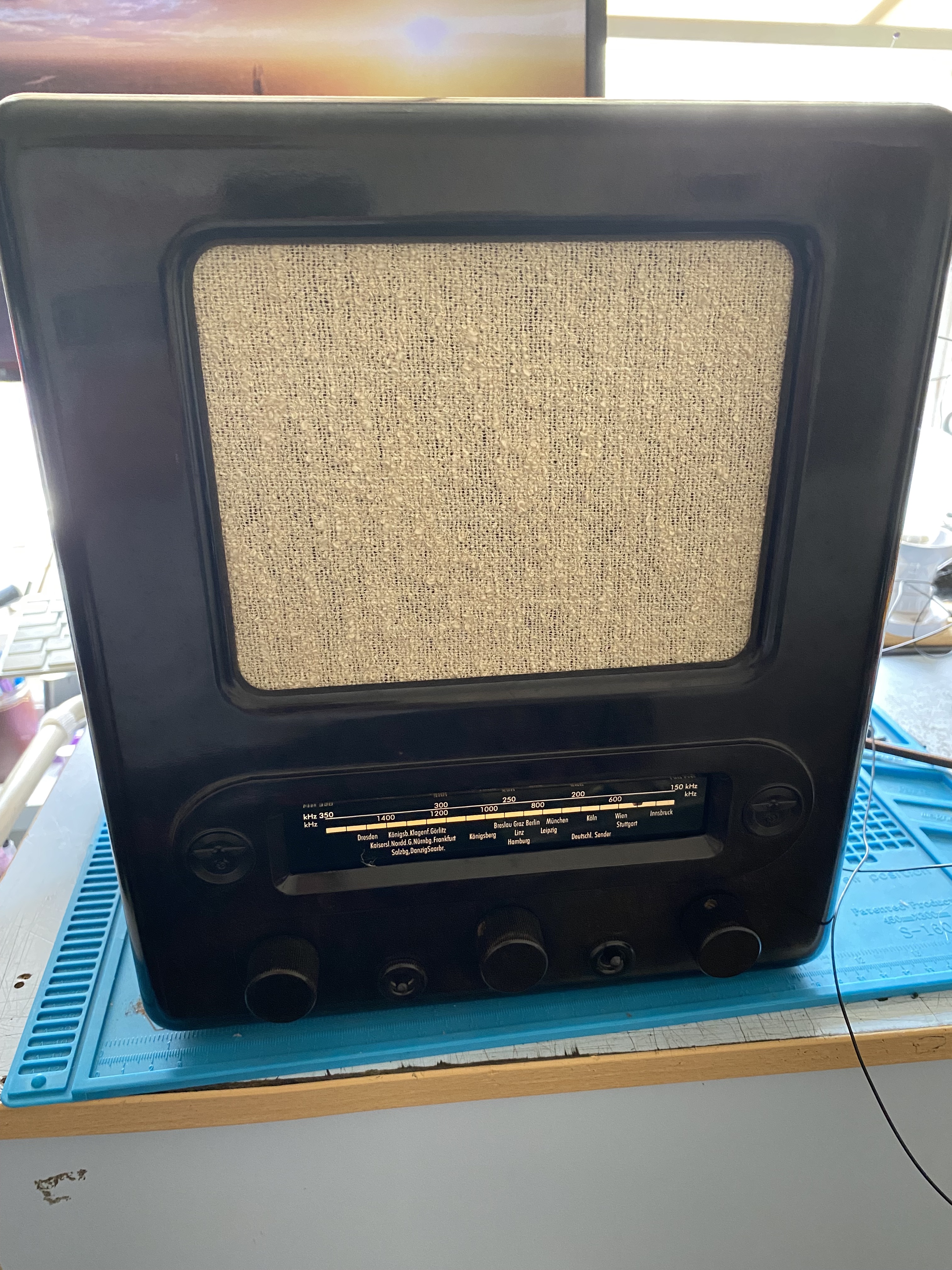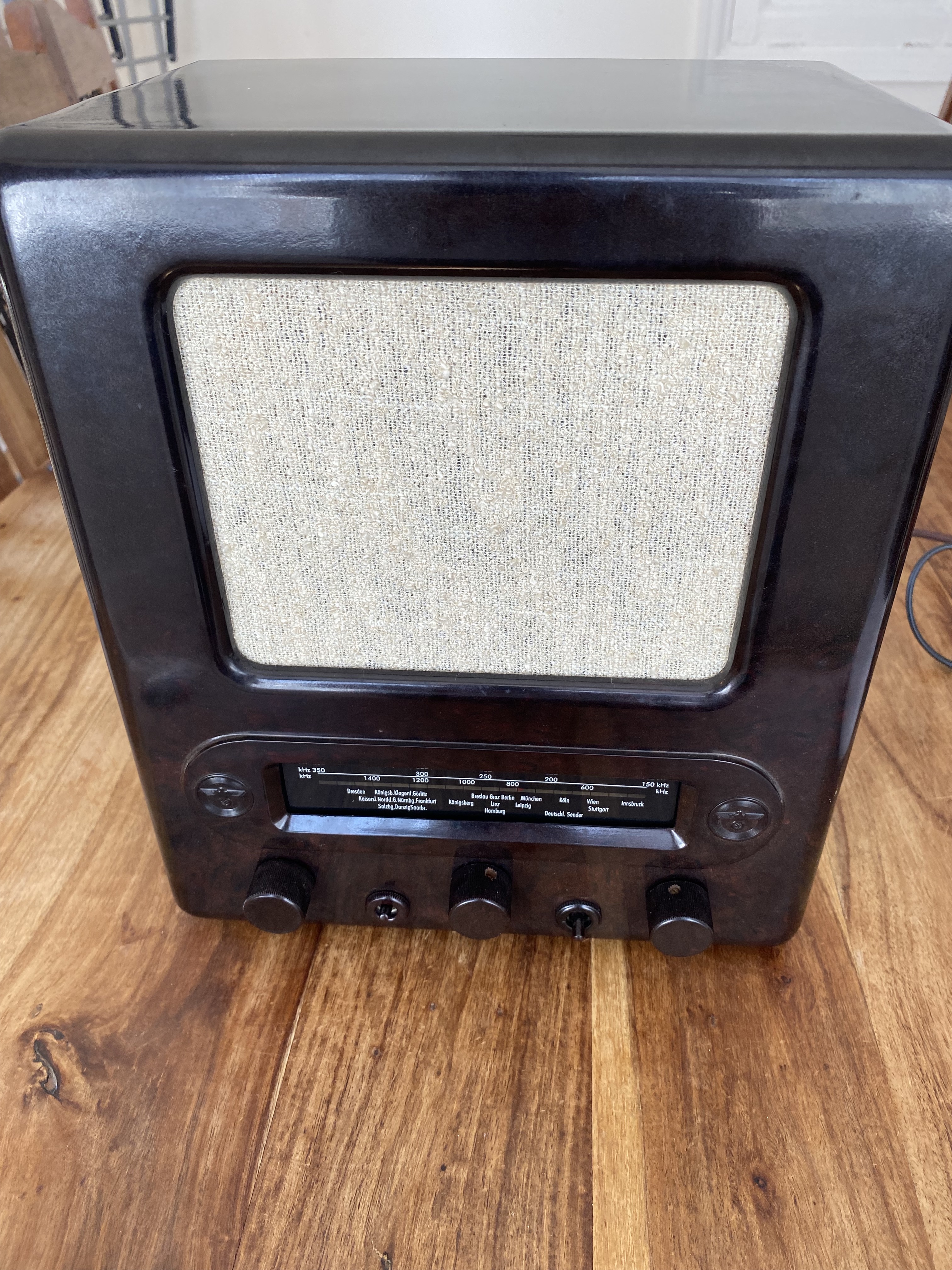 This is the oldest thing I've ever fixed. I'm no radio expert but the owner says it's a German radio that was made in the thirties at the request of the Nazi party so more radios were in in homes for them to spread their propaganda. It's certainly the only thing I've ever fixed that has swastikas on it.