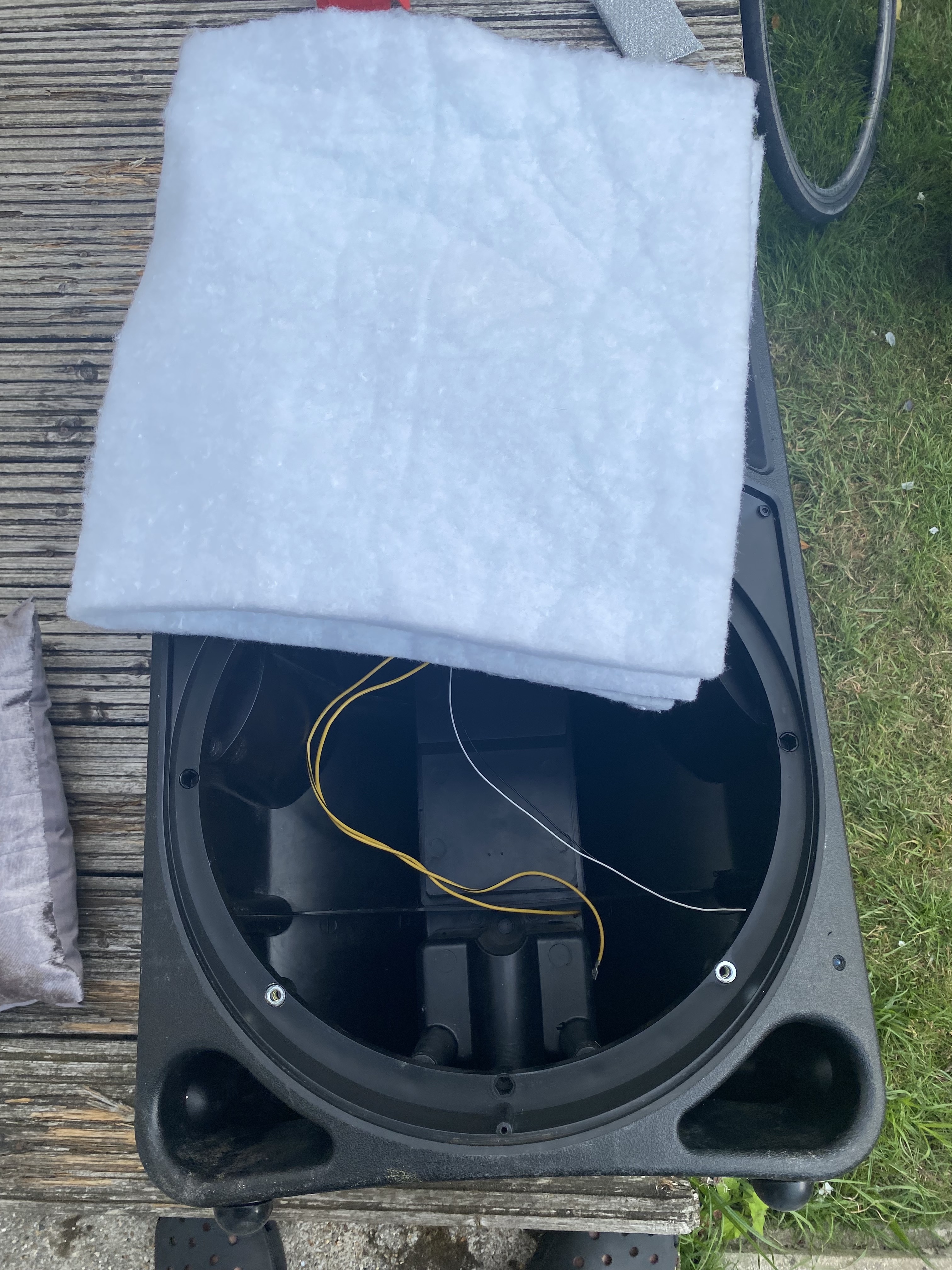 Putting the speakers back together was easy enough, I replaced the wadding and cleaned the rust off the grills too.