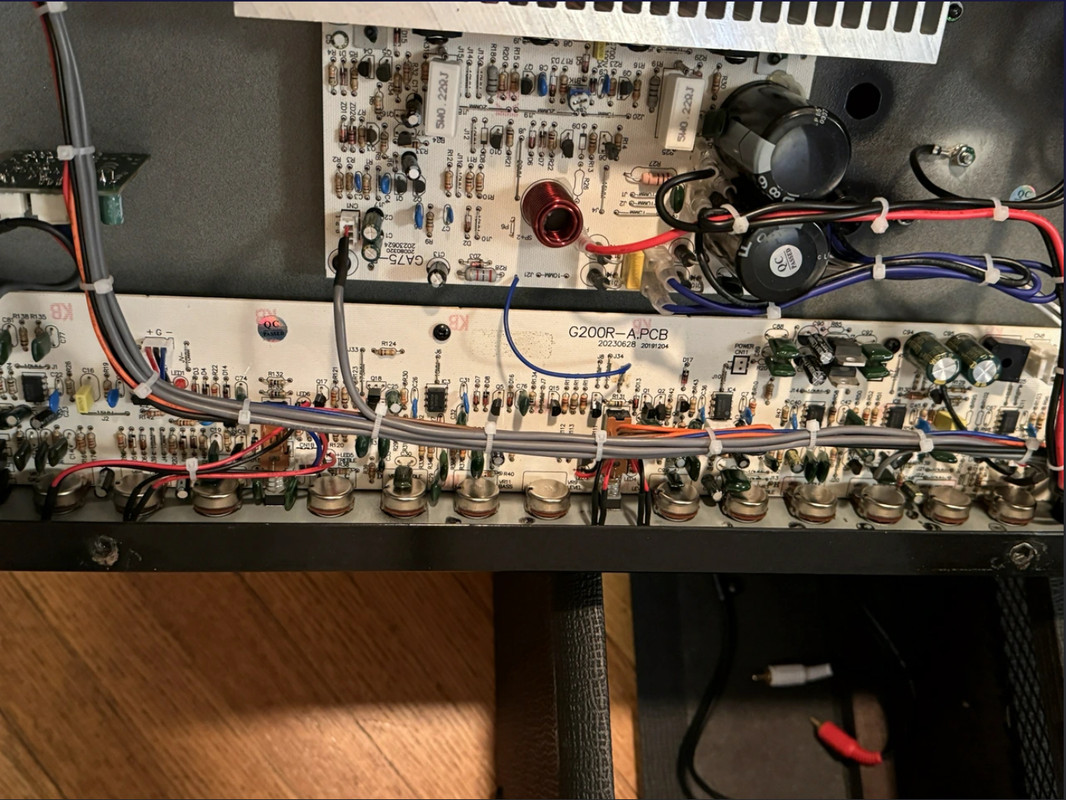 In particular, notice that the two large resistors on the power amp board are mounted on proper stand-off posts - one of the common failures on PCB amps is resistors like this either being mounted directly to the board so they cook their solder joints, or held up away from the board by their own leads so they vibrate and crack the joints instead… the devil is in the detail, PCB is actually very reliable if the correct design choices are made like this and not penny-pinched.