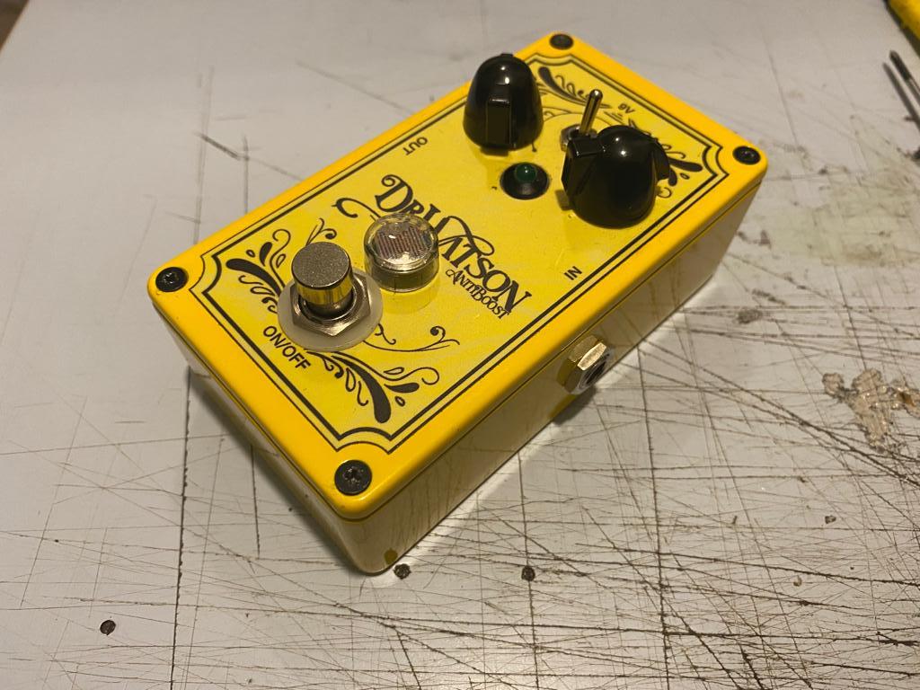 You can make an antiboost with a can of tuna, a footswitch, a pot and one guitar lead. I did a few gigs with mine before I built a more uniform looking pedal.