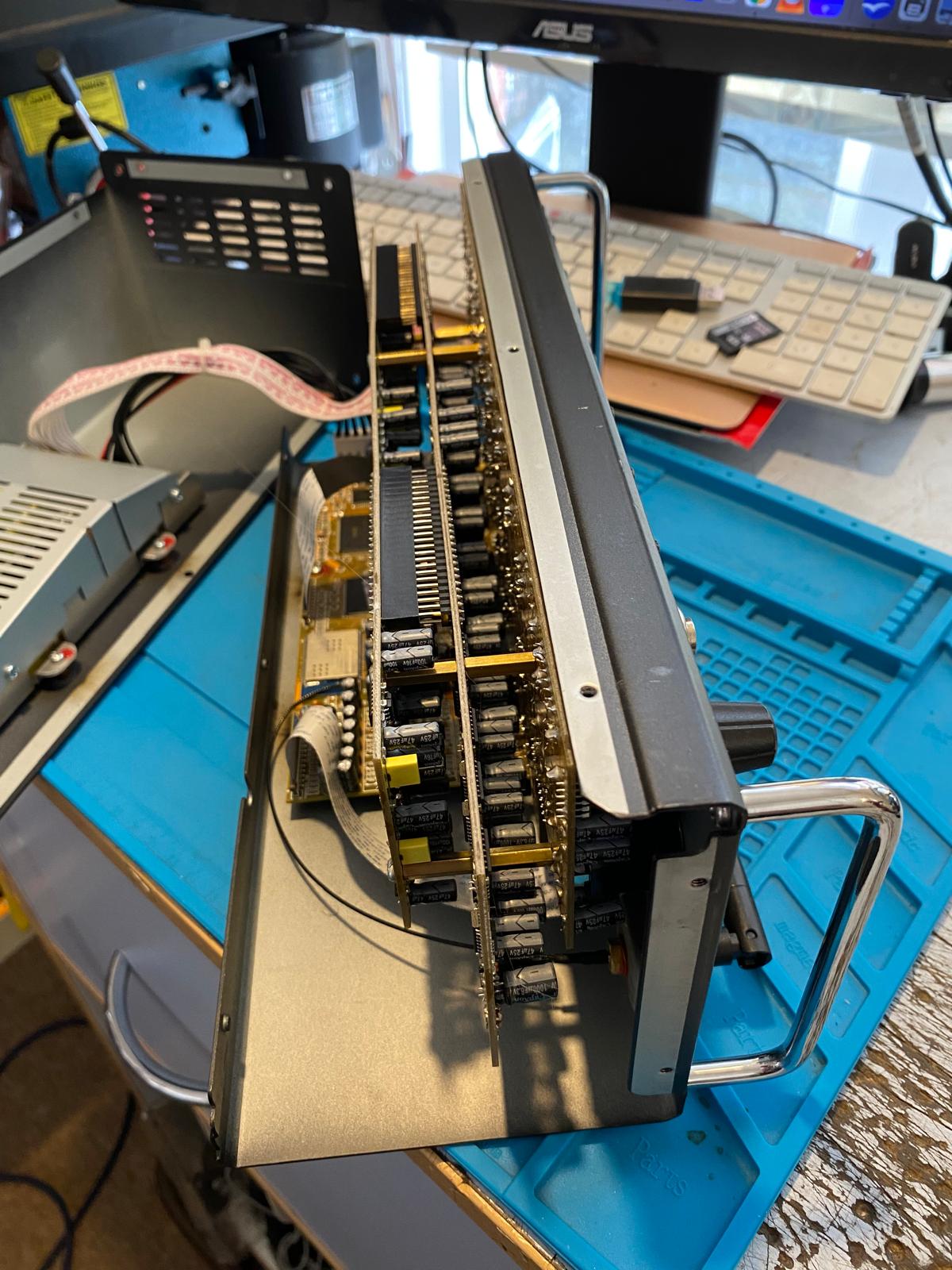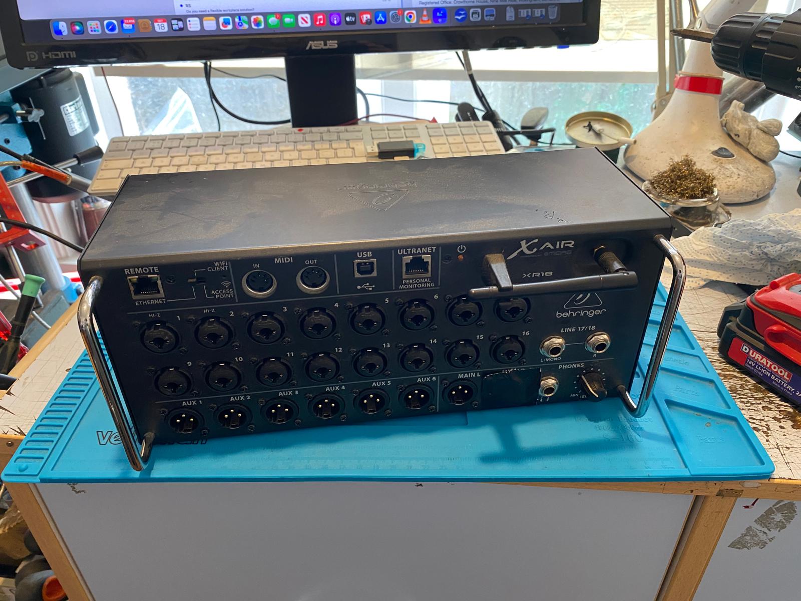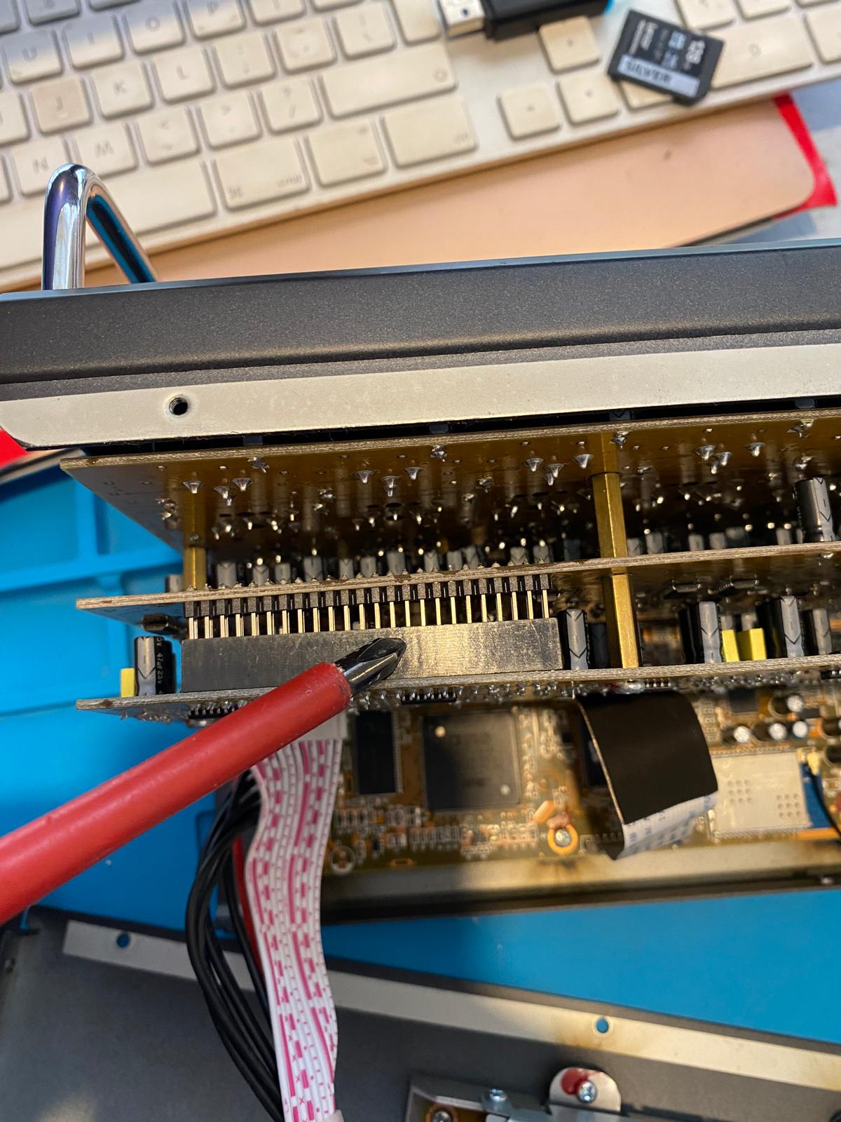 It didn't take long to spot the issue. These kind of high density connector headers are common on multi board assemblies but normally they are supported by posts and screws to keep them connected properly. Behringer must have decided this wasn't necessary and didn't bother with supporting one end. The odd thing is normally with decent headers there is a bit of latitude with movement as they are plated all the way through. With this cheap crap header it loses contact unless it's on true. Another odd thing is nothing can touch this board because it's internal, so this movement has happened with heat, vibration or maybe it was never fitted right at the factory.