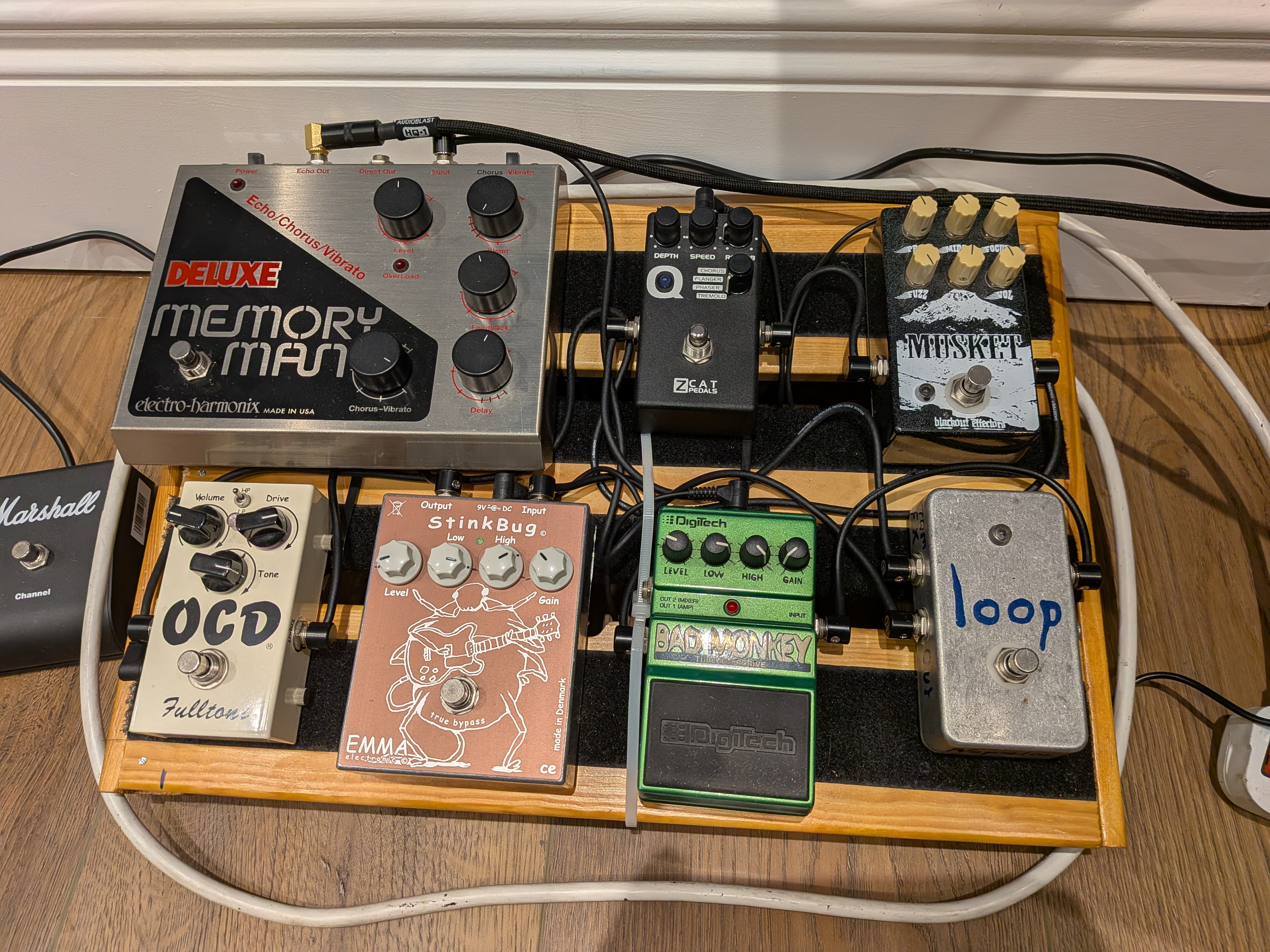 Currently the true bypass loop is there because the Bad Monkey is a tone suck when bypassed. I thought I was stuck with that but I see DOD do a Badder Monkey which is true bypass and has a "behaved monkey" lower gain mode which sounds like it would work for me (I set the gain to basically 0 and use it as a boost).