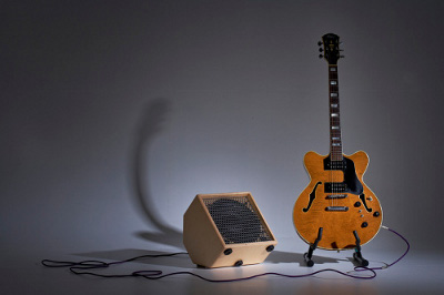 My normal setup is a 1x2 behind me (mic'd) and also a lead to a 2nd speaker in a passive wedge in front of me so I can hear my noise.